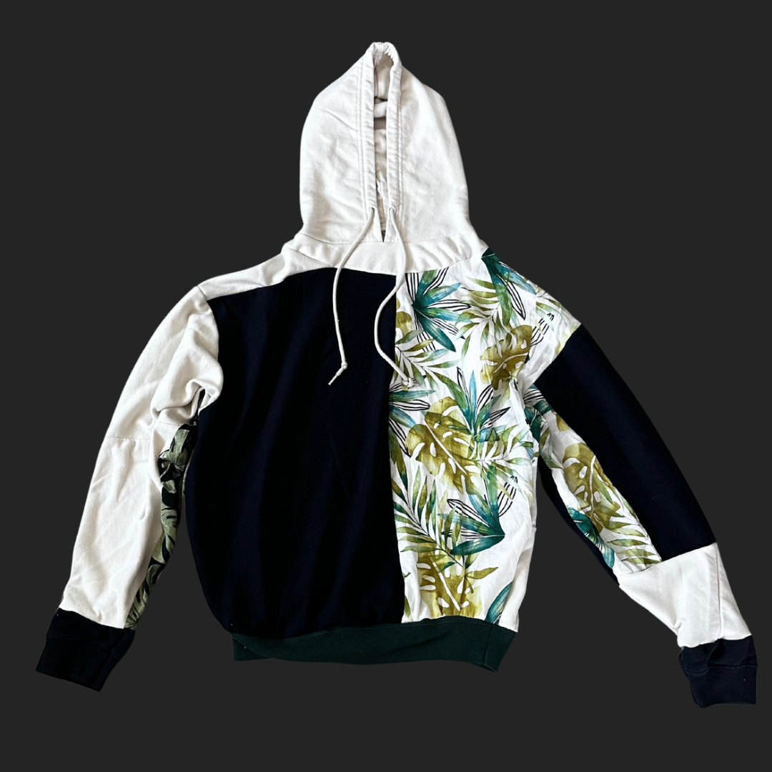 All hoodies are made with rescued fabrics. Variations in material are to be expected.